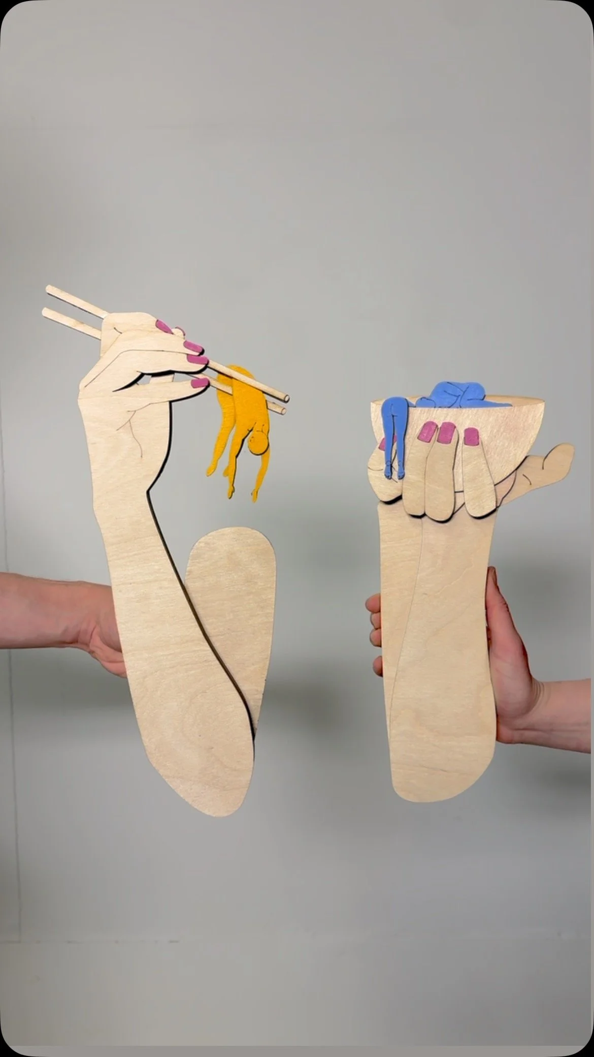 Her work explores human form and feminine sexual expression using bold colour, 3 dimensional layering and movement in a pop surrealist style.
